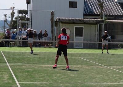 昨日の団体戦には出なかった選手も出場し、一生懸命頑張りました。写真は上から、渡邊・坂本ペア、長友・堀田ペア、原・森ペアの試合の様子です。