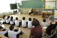 4校時目に、町にあるえほんの郷の方々による「お話し会」がありました。めくられる絵本のページを見ながらお話を聞いたり、自分の言葉だけで伝えられるお話を聞いたりしながら、物語の世界に引き込まれていました。「はなのあなのはなし」や「りんごです」というようなユニークなタイトルのお話もありました。(10月19日)