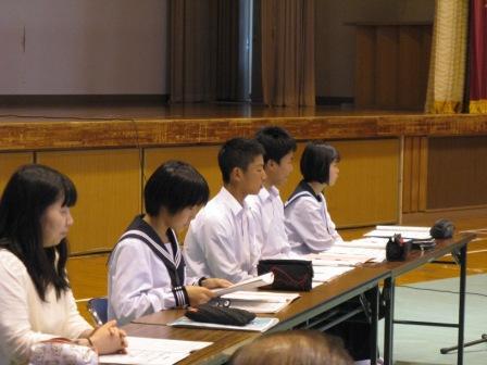 総会では全校討議題を「あいさつが良い学校を目指そう」として全校討議をしました。活発な