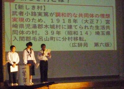 ご来賓や保護者のみなさまに見守られながら、生徒たちは合唱に劇にスピーチにがんばり、素晴らしい文化祭にすることができました。写真は上から1年生・2年生・3年生の発表の様子、一番下は合唱コンクールの様子です。
