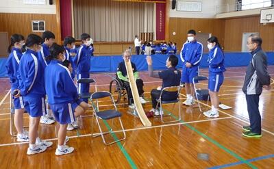 今回は、もうすぐピョンチャン・パラリンピックが始まることもあり、障害者スポーツの体験をさせてもらいました。実施にあたっては、県の障がい者スポーツ協会や、町の社会福祉協議会の方々にご協力いただきました。