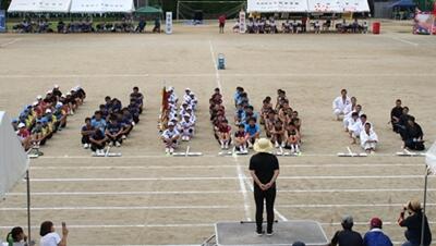 午後の最初は部活動紹介。5つの部と2つのクラブが行進した後、PTA保体部長さんから、励ましの言葉をいただきました。