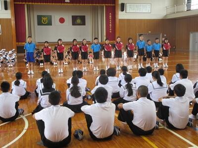本日の5校時、西都児湯地区中学校総合体育大会の推戴式が体育館で行われました。各部活動、クラブの選手が大会に向けて力強く抱負を述べてくれました。また、選手を代表し柔道クラブの主将が選手宣誓をしました。みんなで温かい拍手を送り、選手を激励しました。