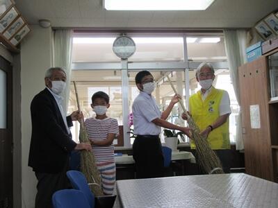 昼休みに木城小学校校長室で贈呈式が行われ、児童・生徒代表がライオンズクラブの会長さんから竹ぼうきを受け取りました。贈呈式には木城町教育委員会の先生方にも来ていただきました。竹ぼうきは学校の清掃活動に活用したいと思います。本当にありがとうございました。