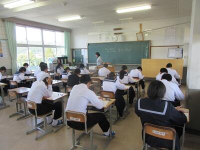 今日から明日にかけて、3年生は実力テストを受けます。これから何回かこのようなテストを受け、自分の力を知り、課題を見つけてその対策を立てていきます。みんな真剣に取り組んでいました。