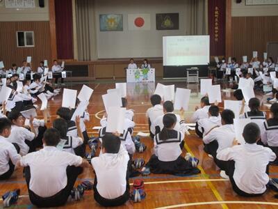 また、全校討議題として「読書活動の活性化」についてみんなで話し合いました。たくさんの良い意見が出ましたので、これから執行部を中心に実行に移していきます。準備をしてくれた、生徒会役員の皆さんもお疲れ様でした。