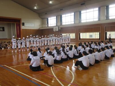 本日の5校時、西都児湯地区中学校総合体育大会の推戴式が体育館で行われました。各部活動、クラブの選手が大会に向けて力強く抱負を述べてくれました。また、選手を代表し柔道クラブの主将が選手宣誓をしました。みんなで温かい拍手を送り、選手を激励しました。