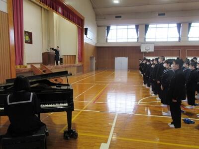 始業式では、各学年代表と生徒会代表が新年の抱負を述べてくれました。3年生は受験が近く、ますます勉強がたいへんになります。1・2年生も1年間の反省と次の学年への準備をしっかりしていきましょう。