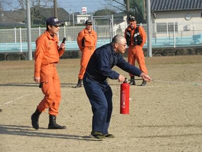 全員が避難した後、東児湯消防組合の方に講話をしていただき、その後、消火器を実際に使った訓練をしました。今日の訓練をいざというときに役立てていきたいと思います。