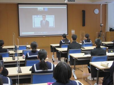 先週金曜日、「夢の教室」がリバリスで行われ、2年生が参加しました。これは日本サッカー協会が主催する、子どもたちの夢の実現を応援するという活動です。コロナウィルスの影響でリモートで行われました。講師は宮崎県出身の水泳選手 松田丈志さんでした。オリンピックで活躍した松田さんが、自身の経験を基に、夢に向かって努力することの大切さを熱く語っていただきました。生徒にとって貴重な経験になりました。