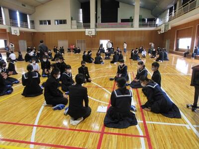 本日は、令和2年度の修了の日です。修了式を体育館で行いました。