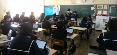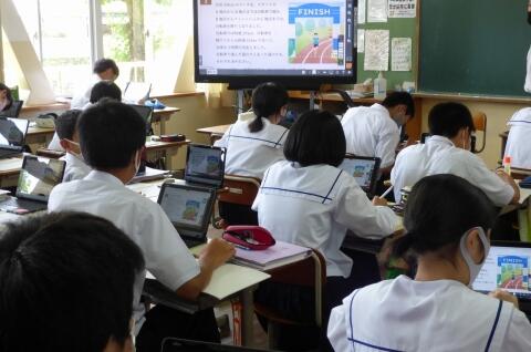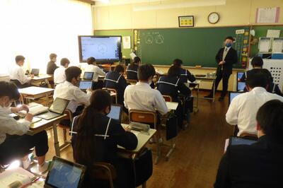各学級の先生方が学級の生徒に対して、タブレット端末を使いながらリモートで授業を行いましたが、いかがだったでしょうか。初めての取組で先生方も生徒の皆さんもまだ慣れていないこともあったと思いますが、皆さんがよく頑張っていたのをタブレットの画面を通して実感できました。