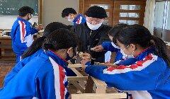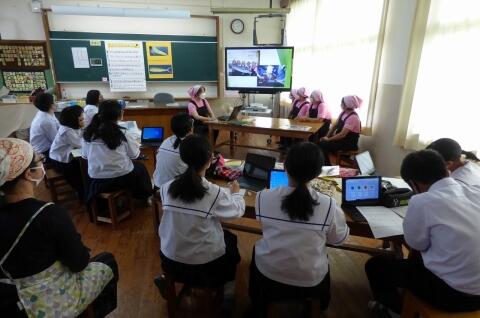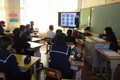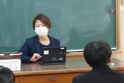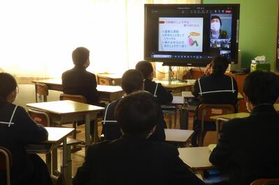 総合的な学習の時間(FT)に、被服室をリモート拠点として、第1・2学年生徒を対象に講演を行いました。講師は、原田伊久美さまです。