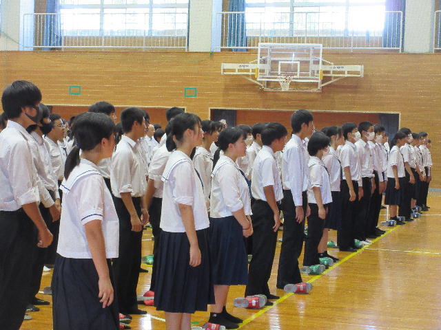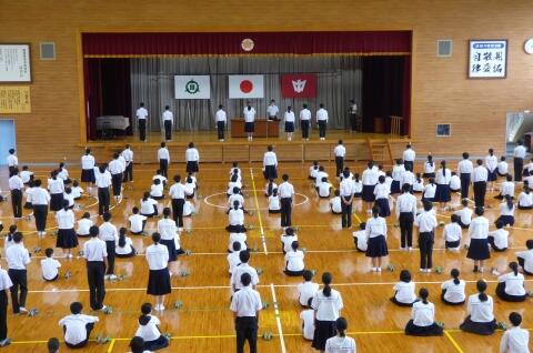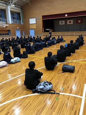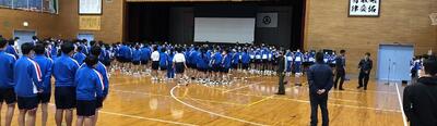 明日から始まる地区中総体に向けて選手激励式を実施しました。