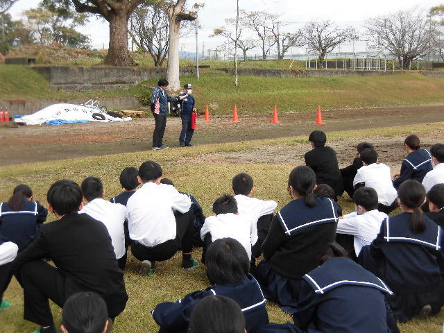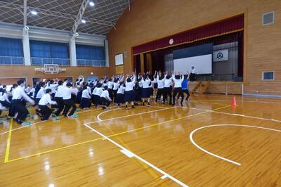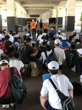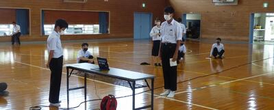 本日、地震を想定した避難訓練を実施しました。本来ならば屋外へ避難することになりますが、今回は天気の状況を踏まえて、体育館への避難としました。どの生徒も真剣に訓練に参加していました。