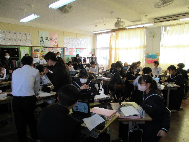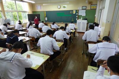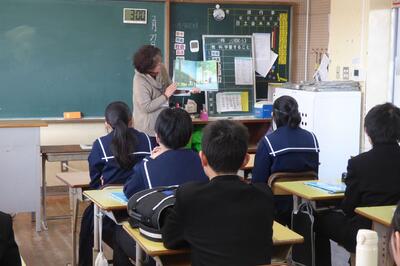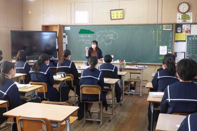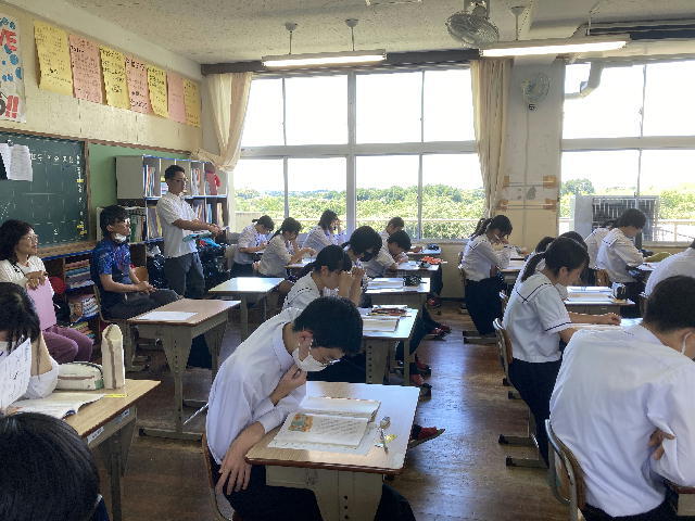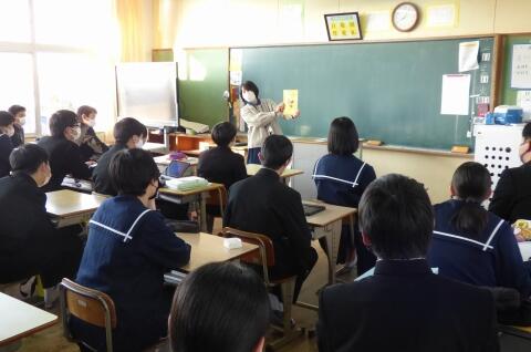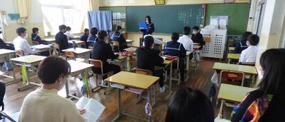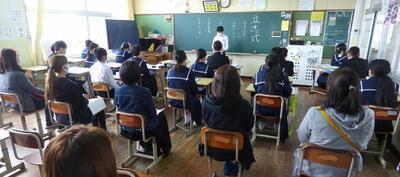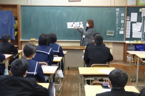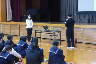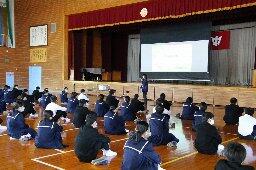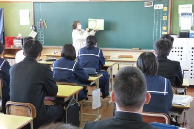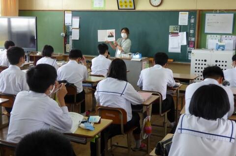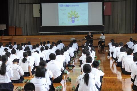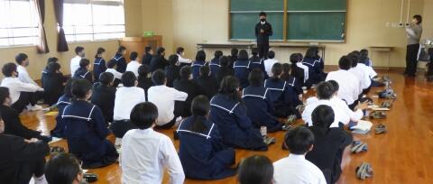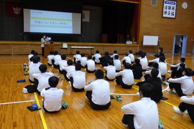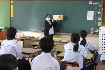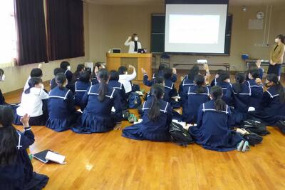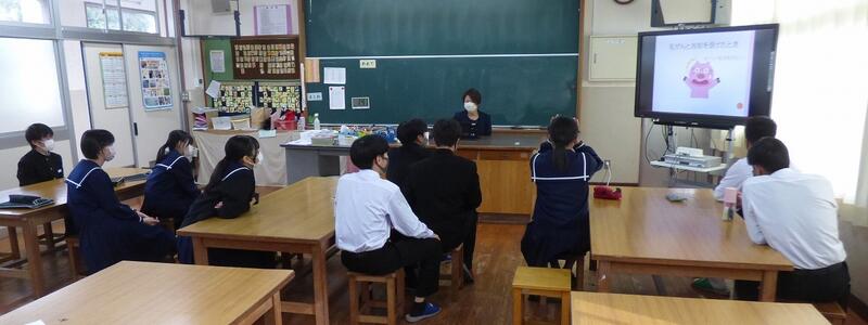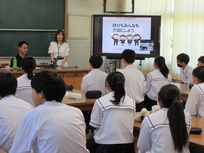 宮崎県助産師会の「か母ちゃっ子クラブ」の方に講師を依頼し、「思春期の性について」という内容で講話をしていただきました。各学級では生徒の皆さんが真剣に参加していました。