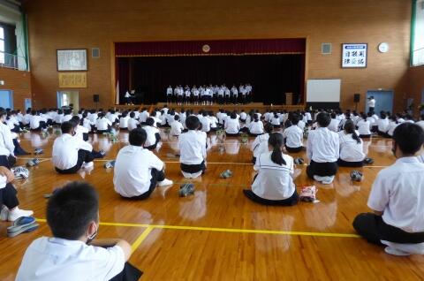 今日は新入生の皆さんにとって中学校生活が始まったという貴重な1日だったと思います。これからの3年間は皆さんの人生においてとても大切な3年間になります。みんなで応援していきますので、新入生の皆さん、頑張っていきましょう。そして、本校に入学してくれて、ありがとうございます。