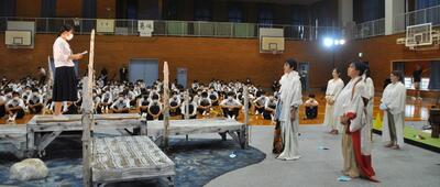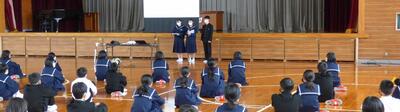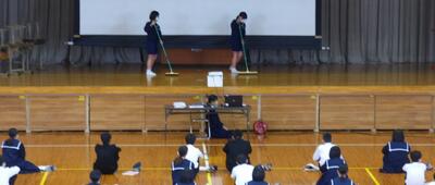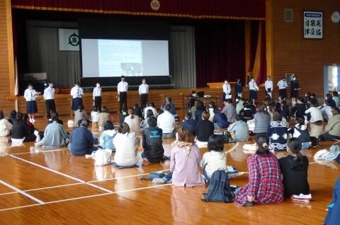 生徒会活動の説明では寸劇を交えながら各専門委員会の活動を説明し、また、部活動紹介では事前に撮影・編集した紹介動画を視聴してもらいました。