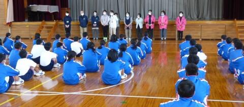 今年度末の定期異動に伴い、8名の先生方が転出されることになりました。式の中で、転出される一人一人の先生が生徒の皆さんに挨拶と話をしてくれました。生徒の皆さんへの感謝の思いとこれからも唐瀬原中学校を一層盛り上げていって欲しいという願いがこもっていたように感じました。生徒の皆さんはどのような思いを感じ、心に刻みましたか。