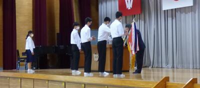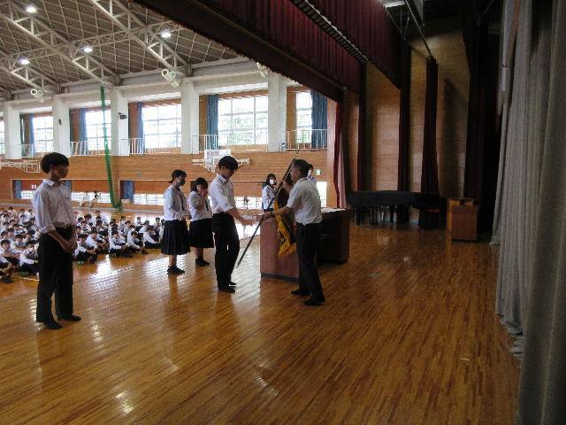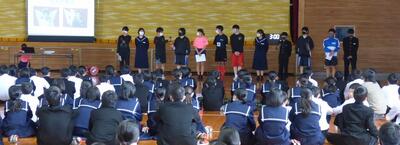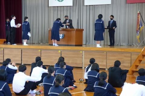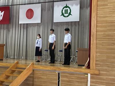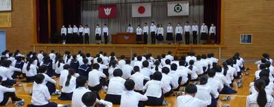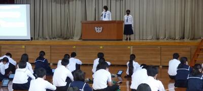 生徒会役員改選が終了し、本日は任命式が行われました。旧役員の生徒は1年間の任期を全うし晴れやかは表情でした。生徒会役員の話を聞く全校生徒も心から賛辞を贈っていました。