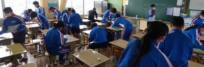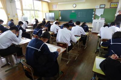 3年生が昨日より第1回実力テストに取り組みました。