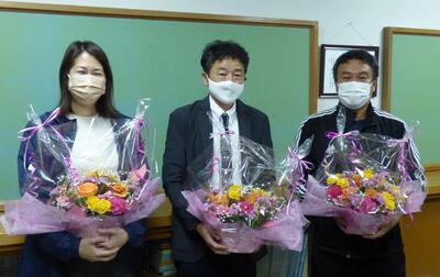 本来ならば、PTA総会の中で、退任される旧PTA三役の方に感謝状を贈呈するなど、感謝の気持ちを伝える場があるのですが、今回はPTA総会が開催できませんでしたので、かわりに4月21日(木)に実施したPTA三役会の中で、子どもが卒業した3名の旧PTA三役の方に花束贈呈を行いました。(保護者の皆様に紹介させていただきます。)
