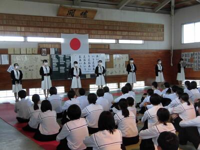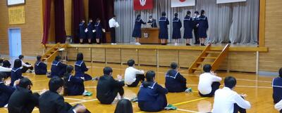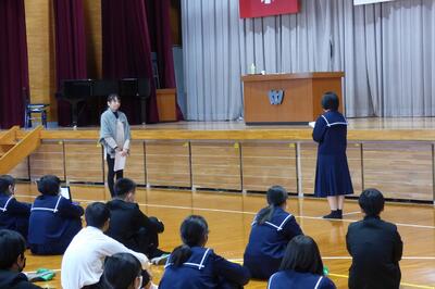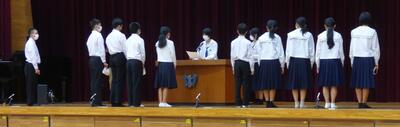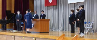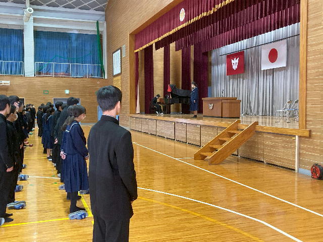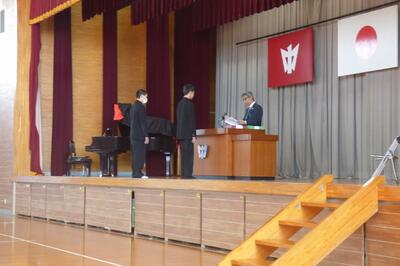 1年間を振り返って、1年生も2年生も大きく成長できたと思います。より主体的に、より活動的になってきたのではないかと感じます。生徒の皆さんには、本日の式の中で話をしたことをこれからの頑張りに生かしていってほしいと願っています。皆さんは1年間よく頑張りました。ありがとうございました。来年度のさらなる活躍と成長を願っています。