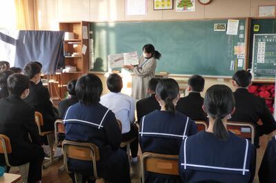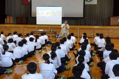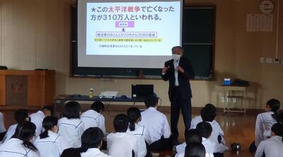 生徒の皆さんに動画等を使いながら分かりやすく説明をしていただきました。川南町に関連する話も含まれていたと聞いています。ふるさと川南のことをより深く理解する機会になっていればありがたいです。