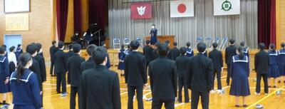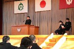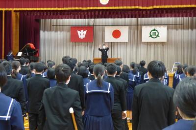 本日の式では多くの激励の言葉をいただきましたね。それらの言葉も心に刻み、そして、仲間や保護者への感謝の気持ちを忘れずに、大きく成長していってください。皆さんのこれからのさらなる活躍と頑張りを願っています。