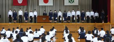 4月7日(木)、コロナ感染予防対策を徹底しながら、新任式と1学期始業式を実施しました。