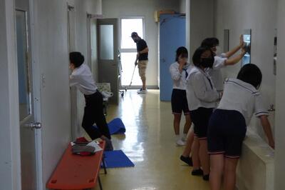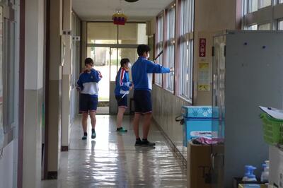 また、本日は校内美化活動に取り組みました。これまで支えてくれた先生方や保護者の皆様への感謝の気持ちをもって、校舎内外の清掃を行いました。