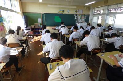 日頃皆さんには「主体的に考えて、行動し、振り返る」ということについてお願いしていますが、実力テストはこの「振り返る」ための絶好のチャンスです。これからも一生懸命頑張って学習し、実力テストに取り組んでいってください。