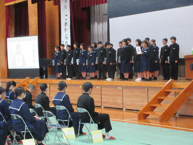 各会場では、生徒一人一人が堂々と自分の意見を発表するとともに、立志につながる詩の朗読を行いました。