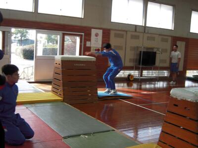 保健体育の授業で、跳び箱が始まりました。跳び箱は「器械運動」の一つです。この跳び箱では、「恐怖心を克服すること」「ロイター板の活用すること」が大切です。特にロイター板を上手に使うことがポイントのようです。