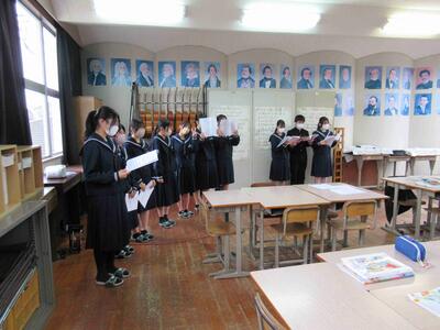 【音楽は卒業式の歌の練習です。】(真剣!)