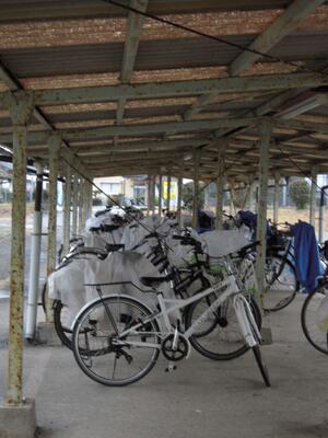 今朝は久しぶりに雨が降りました。生徒指導担当の先生を中心に、自転車の鍵かけ指導を行っています。