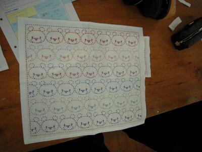 下地の絵柄は同じでも、糸の色の使い方で世界に一つしかない作品がで完成しています。