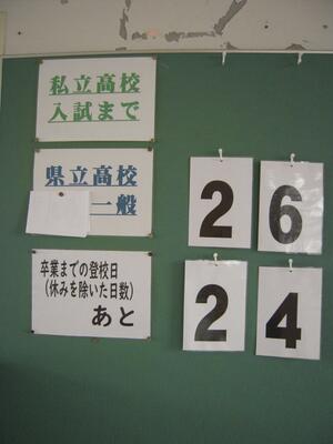 3年生カウントダウンボードです。私立高校入試が終了し、ボード表示がなくなりました。
