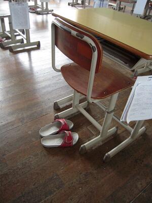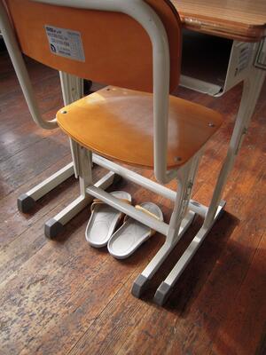 スリッパ盗難防止のため、教室にありました。