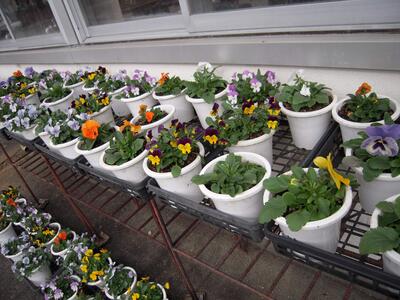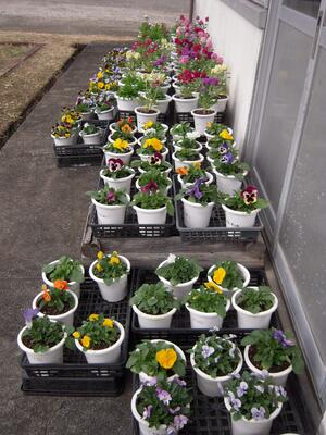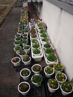 卒業式や入学式で会場を彩るお花が育っています。