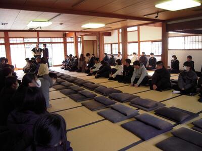 建仁寺は臨済宗建仁寺派の大本山で、建仁2年に開創しました。開山は栄西禅師、開基は源頼家です。約25分間の坐禅体験でした。坐禅により「心と体をマッチングさせること」は簡単なようでとても難しく、自分と対話する貴重な時間となりました。