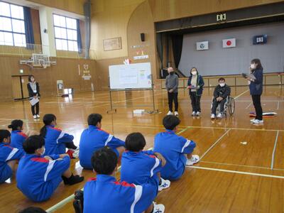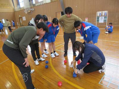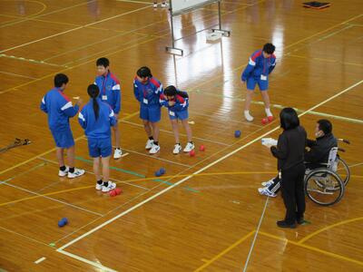 12月11日(木)に1年生が福祉体験学習をしました。12月4日(木)には、福祉について事前学習を行いました。今回はボッチャにチャレンジしました。そのボッチャは、年齢、性別、障がいの有無に関わらず全ての人が共に競い合えるスポーツです。