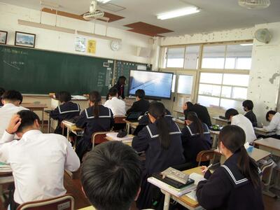 今日の授業の様子です。3年生は数学です。2点間の距離を求める学習をしています。