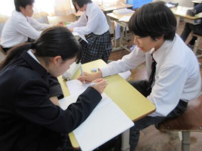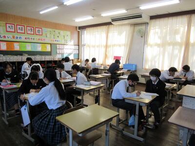 今日の授業の様子です。明後日から冬休みがやってきます。冬休みとはいえども、各教科担任の先生から宿題(課題)が出されています。2年生国語はプリント数枚です。