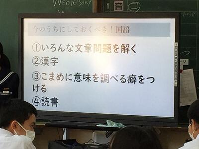 昨日の授業、講話(1年)、高校説明会(2,3年)の様子です。