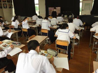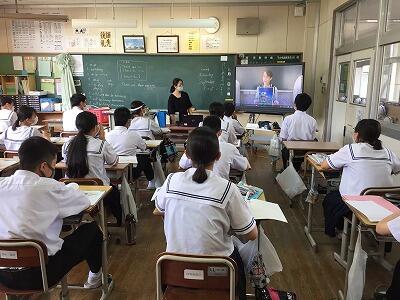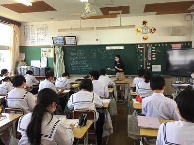 3年の音楽の授業です。滝廉太郎の「花」の歌について学んでいます。(昨日)