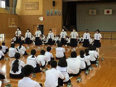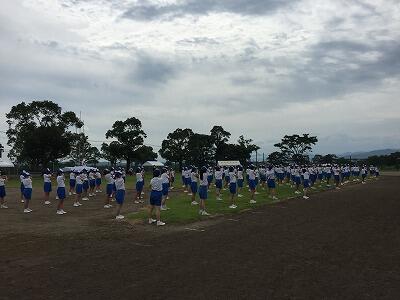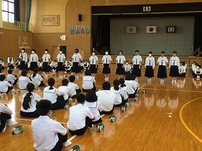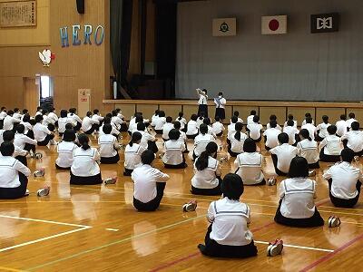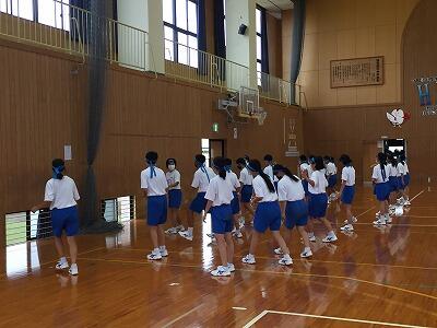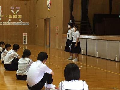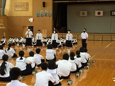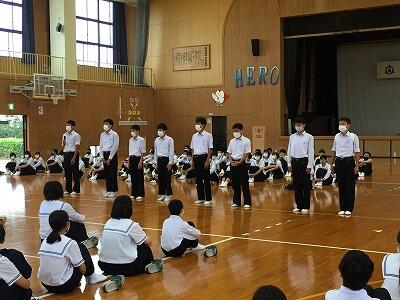 1、2年生の運動部活動生の集合です。容儀検査の意義(大会当日に最高のパフォーマンスができるようにするため)を伝えました。