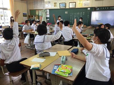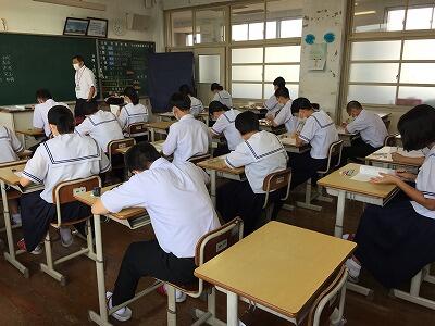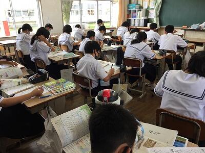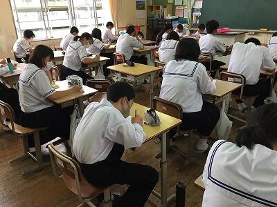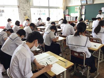 3年の理科の授業です。昨年度の全国学力調査の問題を解いています。(昨日)