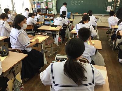 本日は通常の水曜日5時間授業です。1、2年生の学活では生徒会選挙の立候補者選出が行われます。放課後は3年生の希望者対象に公営塾(数学、15:30~17:30)があります。帰りの会終了15:00、部活動終了17:30、下校完了17:45となります。
