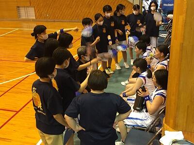 女子バスケットボール部です。2年生5名、1年生3名です。